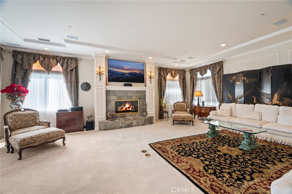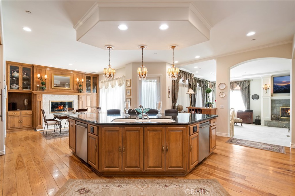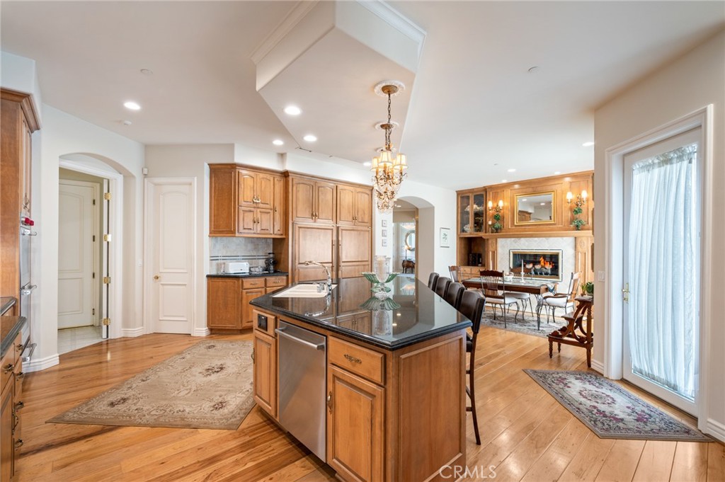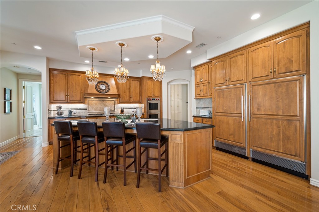 At the center of it all, the chef's kitchen delivers both function and presence, anchored by an oversized island, a double Sub-Zero refrigerator, and premium appliances ready for weeknight dinners or full-scale gatherings.