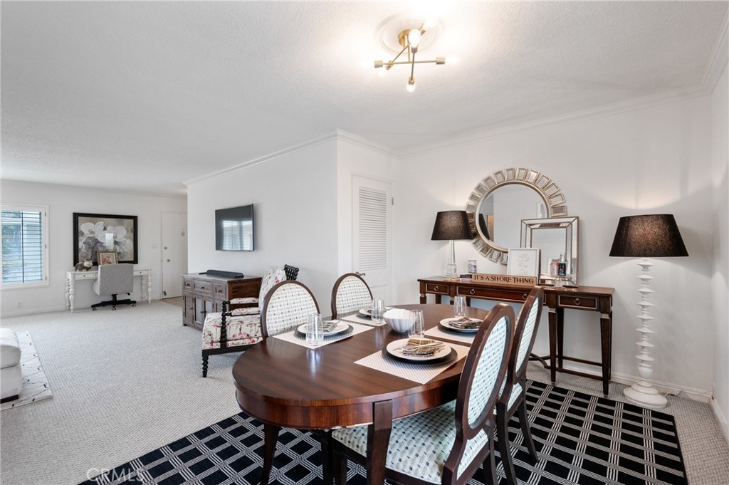 Welcome to a rare gem nestled in the prestigious Paloma Imperial, where coastal charm meets modern elegance. This stunning top-floor unit is bathed in natural light, promising a warm and inviting atmosphere from the moment you step inside. Imagine coming home to a spacious living room, featuring brand new, plush carpeting that cushions your every step. The living area's seamless flow into a dining space makes it perfect for entertaining, and just beyond, a private balcony beckons. Picture yourself unwinding here, watching the sun dip below the horizon, painting the sky with hues of pink and gold. The kitchen is a culinary haven, offering ample storage for all your gourmet gadgets and plenty of counter space to whip up your favorite meals. A versatile nook adjacent to the kitchen is ideal for casual dining or could easily transform into a cozy home office--your choice! Down the hallway, discover an abundance of storage solutions and the ultimate convenience of in-unit laundry. Step into the primary bedroom, an expansive sanctuary with two generous closets, providing all the space you need for a well-organized wardrobe. Dual-pane windows adorned with elegant plantation shutters ensure a peaceful ambiance and enhance energy efficiency. And the perks don't stop there! This home includes a private one-car garage--an invaluable feature for urban living. The serene community offers a tranquil escape while being mere moments from the beach, lush parks, vibrant entertainment, and a bustling nightlife scene. Don't miss out on this exceptional opportunity to make the Paloma Imperial your new home. Schedule a viewing today and prepare to fall in love with this coastal haven!
