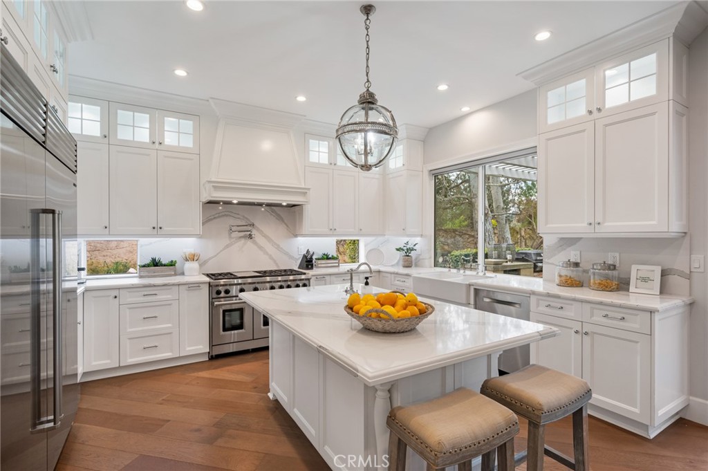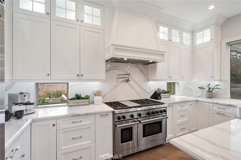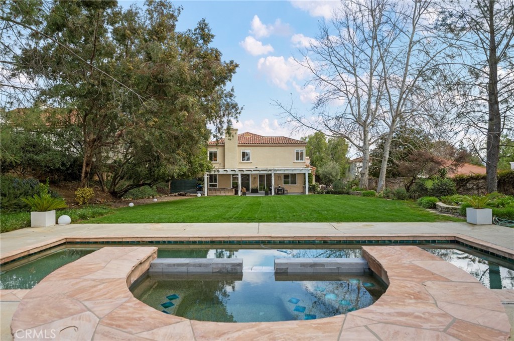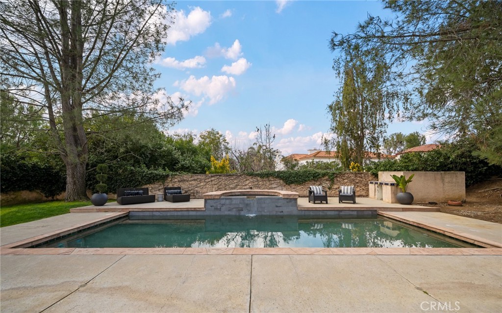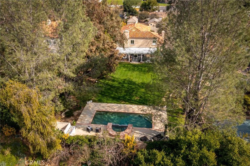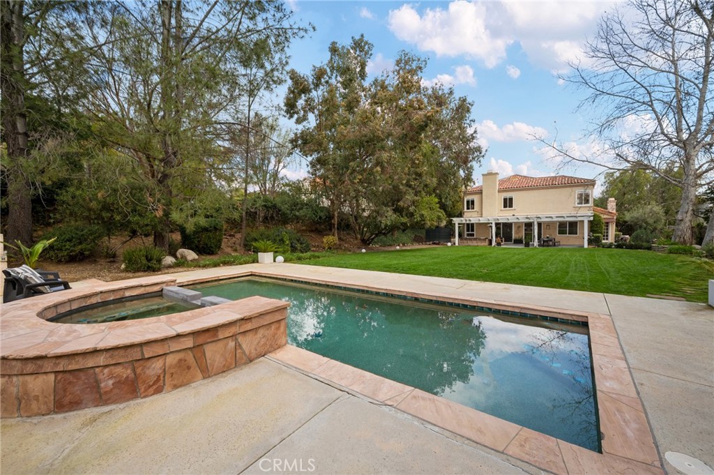 Welcome to your charming oasis in the heart of Old Agoura, Agoura Hills! This stunning residence is a perfect blend of classic elegance and modern sophistication, offering 4 bedrooms, 3.5 bathrooms, and a spacious 3,474 square feet of living space, all set on a sprawling, almost half-acre lot. Step inside to discover classic details seamlessly integrated with contemporary touches, creating a timeless atmosphere that exudes warmth and style. The open floor plan effortlessly connects the remodeled kitchen to the inviting family room, both thoughtfully designed to embrace the quintessential California lifestyle of indoor-outdoor living. The gourmet kitchen is a chef's dream, boasting sleek countertops, high-end appliances, and a convenient walk-in pantry. Entertaining is a breeze with the expansive patio just steps away, complete with a built-in barbecue and comfortable seating areas, perfect for hosting gatherings year-round. Escape to the tranquility of the oversized backyard, where endless opportunities for outdoor enjoyment await. From the lush grassy area ideal for kids' games to the sparkling pool and spa for cooling off on hot summer days, this outdoor haven has something for everyone. Plus, a small sports court provides additional recreational options for active families. As you explore the property, you'll appreciate the convenience of the attached 3-car garage, complete with an electric car charging port. From the moment you arrive and stroll through the charming front courtyard, you'll feel right at home. Whether you choose to keep the home as is or customize it to your preferences, one thing is certain - this is a residence where memories are made and cherished for years to come. Located in the award-winning Las Virgenes School District and surrounded by picturesque scenery and convenient amenities, this home offers the perfect combination of comfort, style, and functionality. Don't miss out on the opportunity to make this your forever home!
